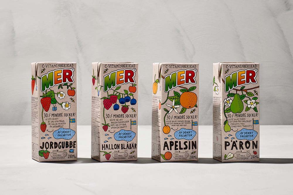 Когда Coca-Cola изменила рецептуру популярного шведского безалкогольного напитка MER, возникла необходимость изменить дизайн упаковки. Это было поручено шведской студии Garbergs_Project.