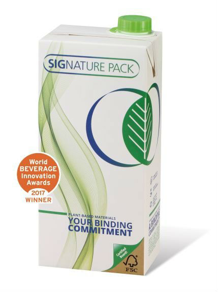 The SIGNATURE PACK from SIG convinced the jury: The world's first aseptic carton pack, which is 100% linked to plant-based renewable material, has won the Beverage Innovation Award 2017 in the category ‘Best carton or pouch’.