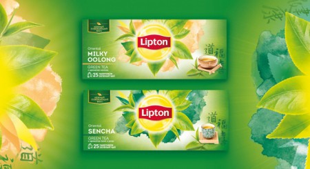 Packing for the oriental collection Lipton demonstrates how the elements of traditional oriental culture can be inscribed into the world of the modern international brand. In case of two popular positions, which intensified the tea line, such details were porcelain cups on wooden stands, Chinese characters and calligraphic color spots (with their help, the problem of the color identification of individual SKUs was solved).
