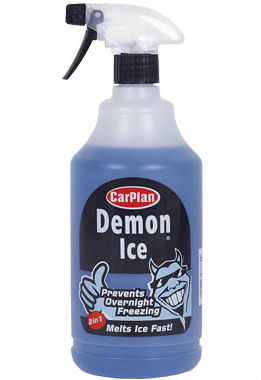 CarPlan Demon Ice is the latest addition to the well-known CarPlan Demon range. Its unique patent-pending technology provides two functions in a single product. It can be sprayed onto car windows the night before to prevent ice from forming and also works as a high-performance de-icer that then helps to prevent refreezing when it is left on the glass.