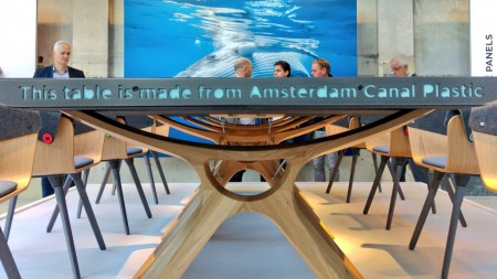 «Ежегодно вместе с тысячами амстердамцев мы вылавливаем из каналов пластиковый мусор. Из этого материала уже созданы десять лодок, которые используются для вылавливания пластика, – говорит Мариус Смит (Marius Smit), инициатор проекта. – Мы используем этот материал для изготовления офисной мебели, но можем делать много больше. В конце концов, существует немало компаний, которые учитывают соображения экологической устойчивости при оснащении своих офисов и могут внести свой вклад в сохранение экологии». Министерство инфраструктуры и окружающей среды, а также такие компании, как Vrumona, Nationale Nederlanden и DSM стали участниками проекта.