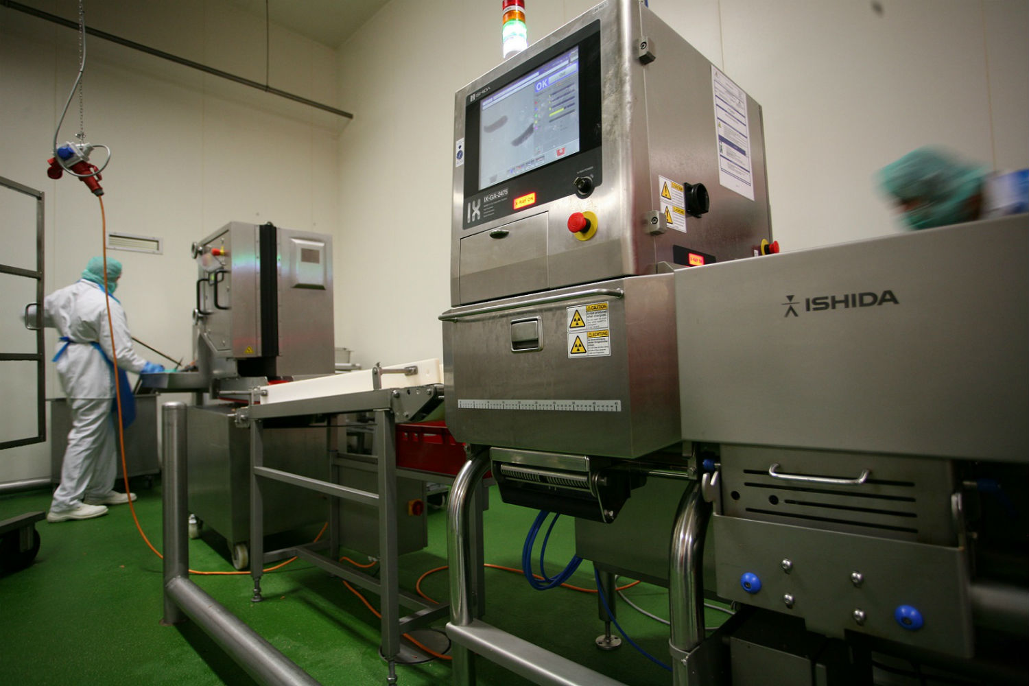 Despite its high speed, the system reliably detects foreign bodies such as pieces of metal, glass and plastic as well as gristle and bone. The requirement to reliably detect pieces of metal with a diameter of 0.6 mm, glass with a diameter of 2 mm and plastic with a diameter of 5 mm has been fulfilled, as regular functional checks with specially prepared products demonstrate.