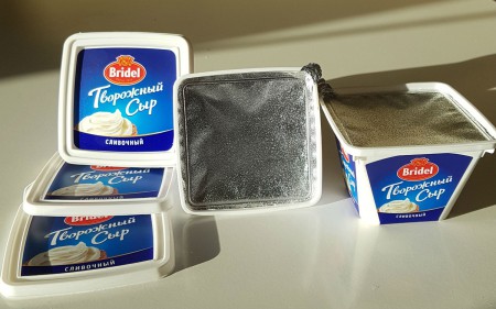 Specially for Lactalis East, Lactalis Groupe department - a world leader in cheese and dairy production, the Packaging Factory MILK has developed a die-cut lid of a unique form and size. The company implemented a square form foil lid with a “spout” for sealing 140 g pyramid cups with Bridel cottage cheese.
