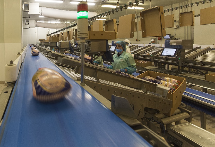 Размеры упаковки варьируются от 700 г до 1200 г для отдельных кусков и от 1400 г до 6500 г для целых тушек птиц. Любой пакет, не содержащий заданных допусков для конкретной партии, перенаправляется в специальный контейнер, чтобы он повторно был взвешен.