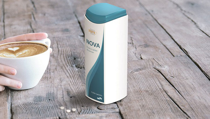 Perfect for hot drink sweeteners, the Nova’s three-piece injection moulded design combines an attractive modern shape with a smooth and fluid dispensing mechanism. The curved lines are comfortable to hold while allowing easy one-handed operation.