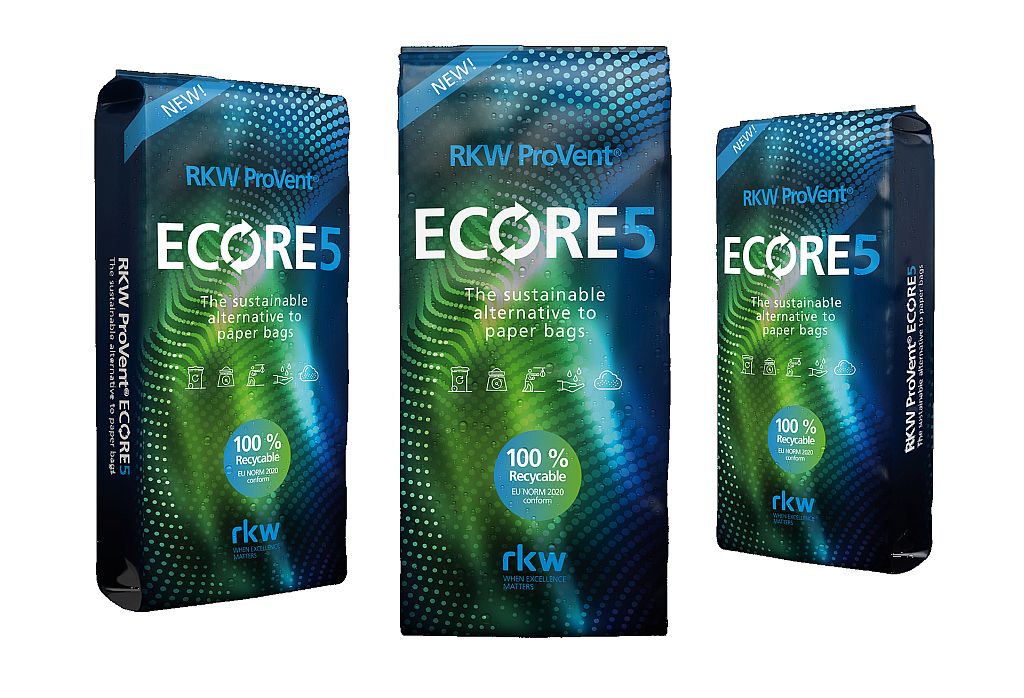 The RKW ProVent® ECORE 5 plastic sack solution presented under a new name at POWTECH is an outstanding example of sustainable industrial packaging. RKW highlights five key advantages that make the polymer-based alternative stand out from paper bags in terms of sustainability. The name ECORE – "ECO" for circular economy and RE for recycling – points to the first key benefit: material recyclability. Johannes Heintges, General Manager at RKW Echte explains: "The RKW ProVent® ECORE 5 packaging solution is made from pure, 100% recyclable polyethylene. While competing paper sack manufacturers use composites that at best can be incinerated, we supply a fully-recyclable solution that has been compliant with the 2020 EU standards for more than ten years." Recycling is much easier, more efficient – and requires 90% less energy than other packaging solutions.