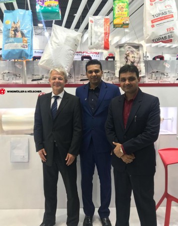from right to left Mr. Ankit Bansal (Director Bright Flexi International), Mr. Abhinav Bansal (Director Bright Flexi International), Mr. Walter Haeder (CEO, Windmöller & Hölscher Machinery)