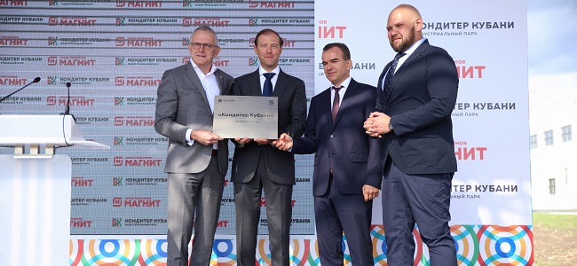 Министр промышленности и торговли РФ Денис Мантуров посетил Индустриальный парк «Краснодар» и дал официальный старт работе крупнейшего на юге кондитерского предприятия — «Кондитера Кубани». В церемонии запуска приняли участие губернатор Краснодарского края Вениамин Кондратьев, президент, генеральный директор «Магнита» Ян Дюннинг и член Совета директоров «Магнита» Александр Винокуров.