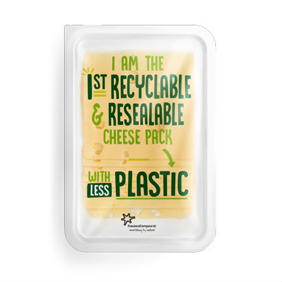 FrieslandCampina introduces a fully recyclable and lighter version of the resealable packaging for cheese. With this, the company achieves a plastic reduction of 30% for its most sold cheese packaging in Europe. This can lead to a decrease of more than 300,000 kg of plastic per year and reuse in other applications. This saving comes on top of an earlier plastic reduction of more than 20%. The dairy multinational is the first in the market with such a cheese pack.