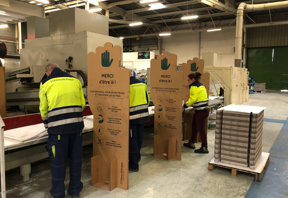A team of Smurfit Kappa designers used equal measures of creativity and skill to quickly produce a practical set of products. The first products that made their debut in a Smurfit Kappa plant in France were corrugated workplace dividers. These were used to protect people who work closely alongside each other so they can maintain a safe distance while carrying out their jobs.