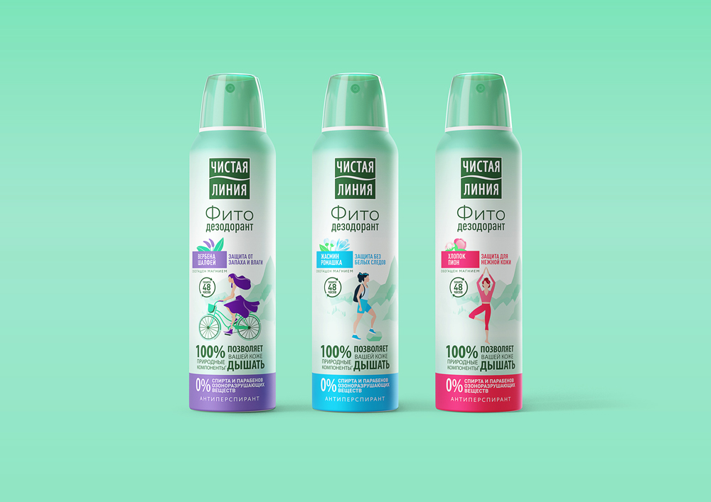 Агентство Yasno.branding разработало новый дизайн упаковки фито-дезодорантов "Чистая линия". В дизайне акцент сделан на движении.