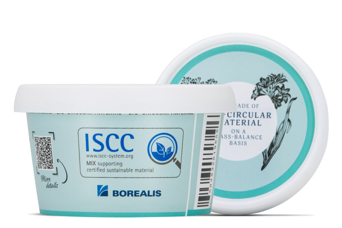 A life cycle analysis initiated by Borealis at its Kallo site in Belgium, showed that using Bornewables substantially reduces a product’s carbon footprint by at least 2.7 kg CO2eq for every kilogram of polymer. This represents a saving of up to 120 percent in comparison to fossil-based PP from Borealis and roughly equates to charging 2,700 smartphones in a year*. Moreover, using these premium polyolefins designed for circularity reduces the depletion of fossil resources by around 69 percent. The entire Bornewables line of products has been certified as part of the ISCC PLUS (International Sustainability & Carbon Certification) system. This chain of custody certification guarantees customers that the feedstock used in the material is certified as renewable and sustainably produced and can be traced to its point of origin. Certification is based on the mass balance approach, which means that a contribution to the use of chemically recycled or renewable materials is made in every material stream. A number of Greiner Packaging’s locations are also already ISCC PLUS certified.