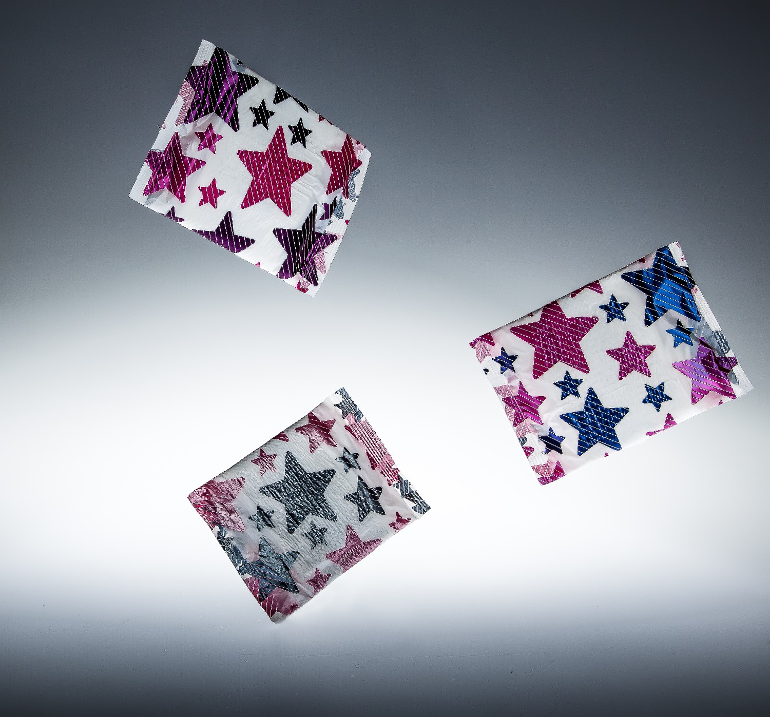 The new line offers the added appeal of inline siliconization, which eliminates the need for release paper, and inline embossing in answer to consumer preference for quieter, more discreet wrappers. Furthermore, the printing press gives customers the freedom to request complex designs thanks to precise registered printing for eye mark accuracy. This allows Mondi to feature different prints on the front and back of wrapping films and provides the option of partial siliconization for a more cost-effective printing run.