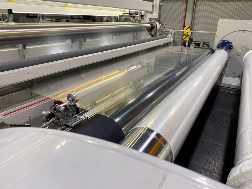 This is the world's first polyolefin TD shrink film line dedicated to the production of EcoFloat™ shrink films. This hybrid polyolefin film facilitates the separation of labels from PET bottles and other types of plastic containers in the recycling process to enable bottle-to-bottle recycling, an important step towards a circular economy.