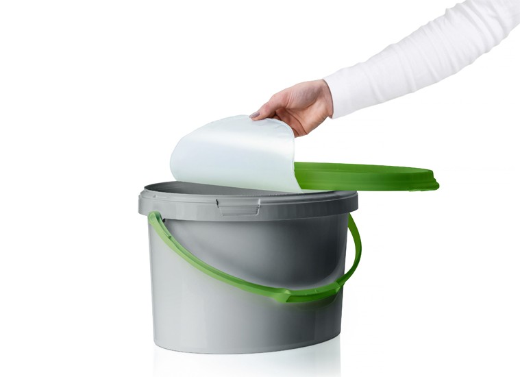 The Jokey sealing lid is 100 percent liquid-tight. The safety film applied by Meffert between the lid and the bucket after filling prevents paint from sticking to the lid. The technology is particularly suitable for preservative-free paints. For users, handling is extremely easy: the film seal can be removed in one piece without any effort, and the paint can be used immediately. Thanks to the PP mono-material, the buckets, plastic handles, and sealing lids are 100 percent technically recyclable and can be returned to the material cycle through the existing collection systems.