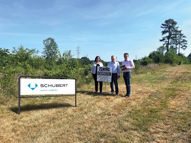 Schubert North America’s leadership team Ana Pryor (Director Finance), Erik Jensen (Director Technical Services) and Hartmut Siegel (CEO), proudly present the recently purchased land for the new regional headquarters