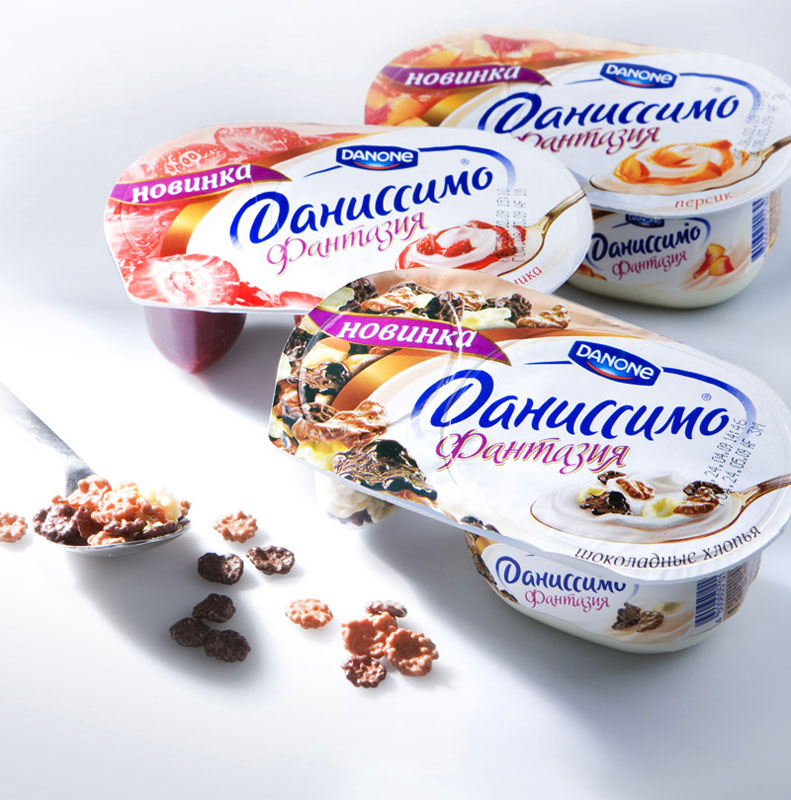 Ранее продукт импортировался из Польши и был представлен в дизайне, разработанном для Европы. В феврале 2009 года Danone принял решение о выпуске «Фантазии» в России в рамках бренда «Даниссимо». Теперь продукт носит название «Даниссимо Фантазия».