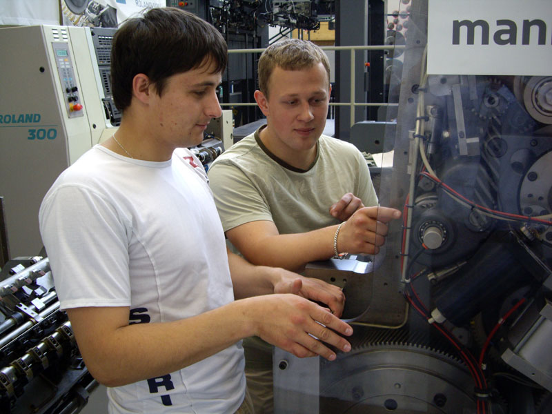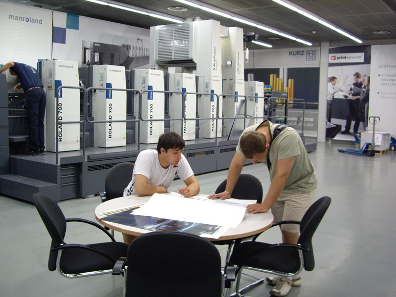 С 5-8 июля 2010 года Кулешов Антон и Баценков Евгений - победители конкурса «Лучший печатник на manroland» - побывали с ознакомительной экскурсией на заводе manroland. Ребята Выпускники полиграфического колледжа имени И. Федорова, посетили производство листового оборудования в г. Оффенбах, Германия.