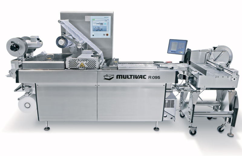 For example, in terms of the thermoforming packaging machines, MULTIVAC presented what is now our smallest model – the R 095. The R 095 has been designed for the production of vacuum and MAP packaging from flexible film. Sliced products can be fed in automatically from a Bizerba slicer via a special infeed conveyor. This means that the R 95 is ideal for manufacturing high quality fresh-seal packaging for small batches of sliced products.