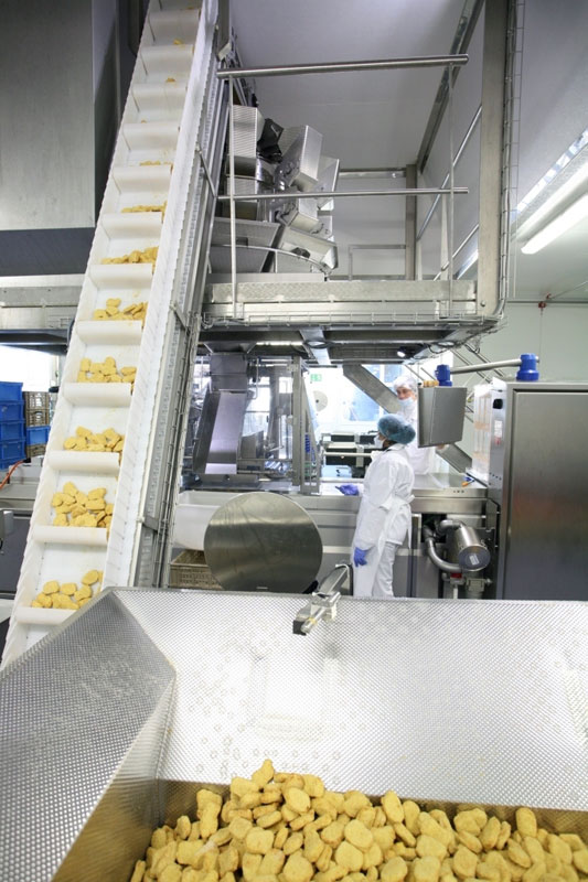 Компактная линия упаковки, включающая в себя мультиголовочный весовой дозатор компании «Ishida» позволяет компании «Fredag AG» оперативно реагировать на самые срочные заказы продукции, такой как, например, куриные наггетсы.