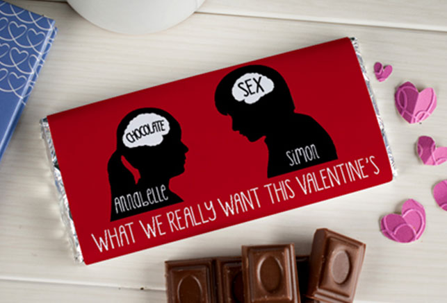 Интернет-магазины Великобритании, такие как Getting Personal.Co.Uk предлагают широкий выбор подарков в праздничной упаковке ко Дню всех влюбленных. По традиции, шоколадки в лимитированной упаковке пользуются особым спросом. На обертку можно добавить любое имя или даже текст с признанием в любви: