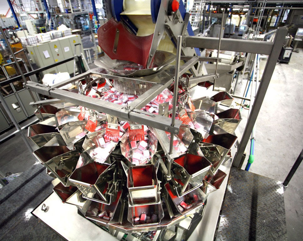 Знаменитая кольцевая структура мультиголовочного весового дозатора является классической пространство сберегающей конструкцией. Это, а также отказ от громоздких и неудобных счетных/упаковочных машин, значительно увеличило свободной площади на фабрике.