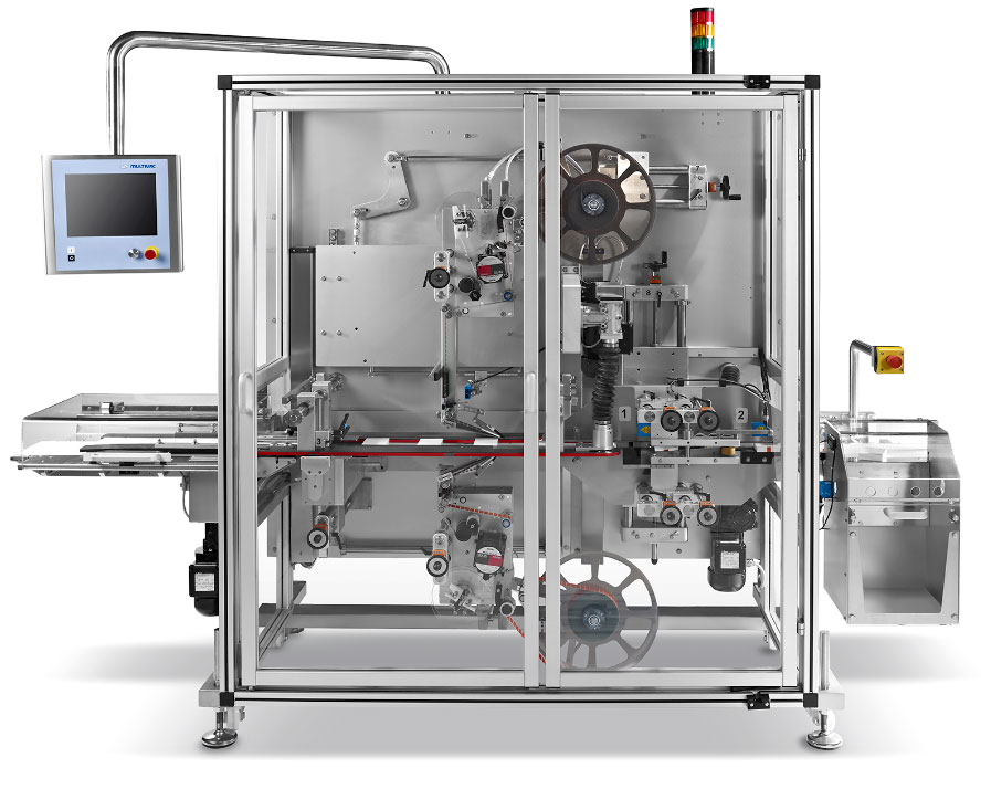 Новый этикетировщик заклеивает клапаны складной картонной коробки этикеткой, обеспечивая возможность обнаружения несанкционированного вскрытия упаковки Устройство контролирует наличие этикетки. Коробки без этикетки отбраковываются. Производительность оборудования – до 400 этикеток в минуту.
