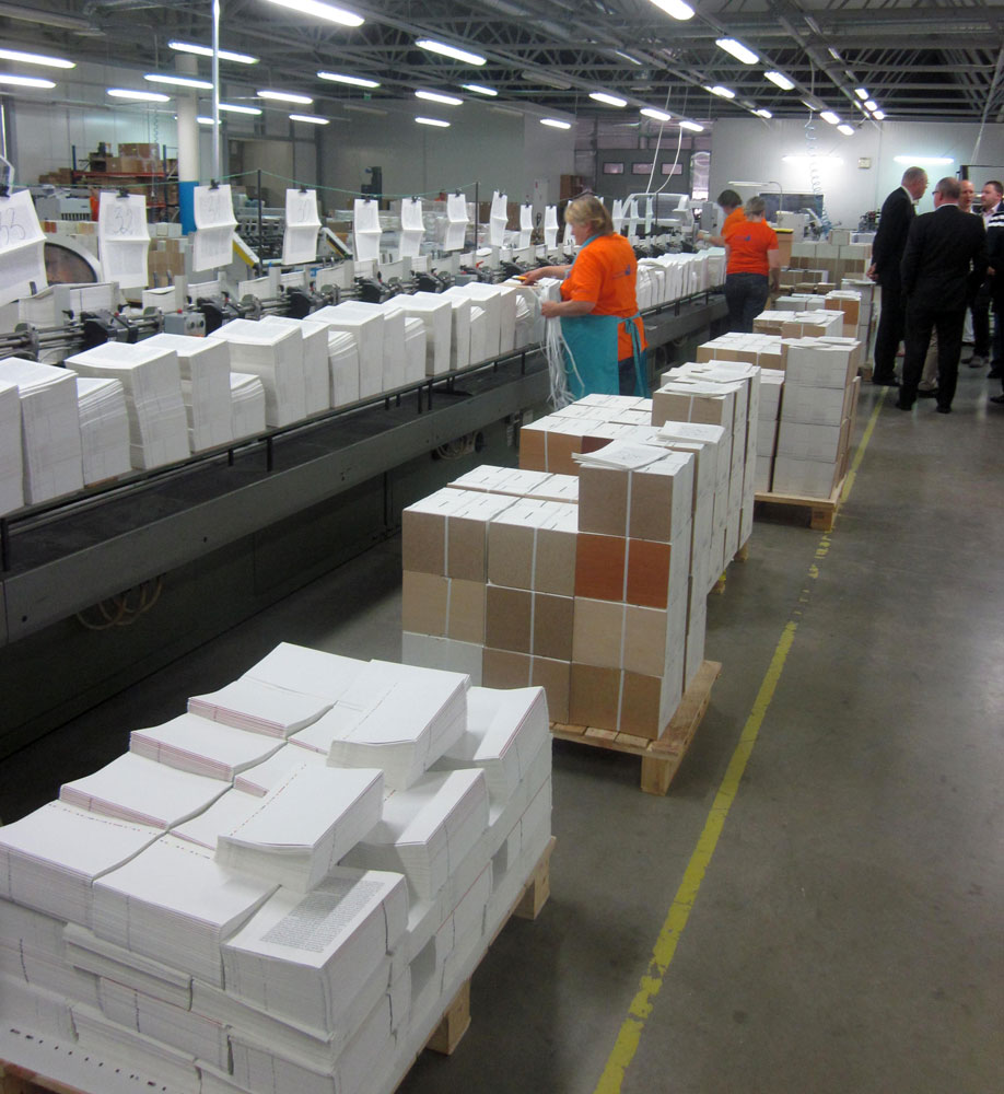 Предприятие впечатляет своими мощностями и обилием производимых книг, календарей, ежедневников и другой печатной продукции. Видно, что в заказах у типографии нет недостатка. В переплетно-брошюровочном цехе большие стопы готовых книг на самых разных языках. Море книг. Основные страны, куда отправляются книги, отпечатанные в Латвии, - это Швеция, Финляндия, Норвегия, Дания, Исландия, Эстония, Германия, Великобритания, Нидерланды и Россия. После Елгавы участники конференции посетили типографию Livonia, еще более крупную, оснащенную по последнему слову техники, выпускающую ежегодно миллионы экземпляров, львиная доля которых идет на экспорт. На мой вопрос относительно участия в сентябрьской московской книжной выставке-ярмарке Анатолий Махлов, исполнительный директор еще одной крупной латвийской типографии PNB Print, ответил, что более удачной выставки у компании еще не было. Рост книжной полиграфии в Латвии продолжается, и главным образом за счет экспорта печатной продукции.