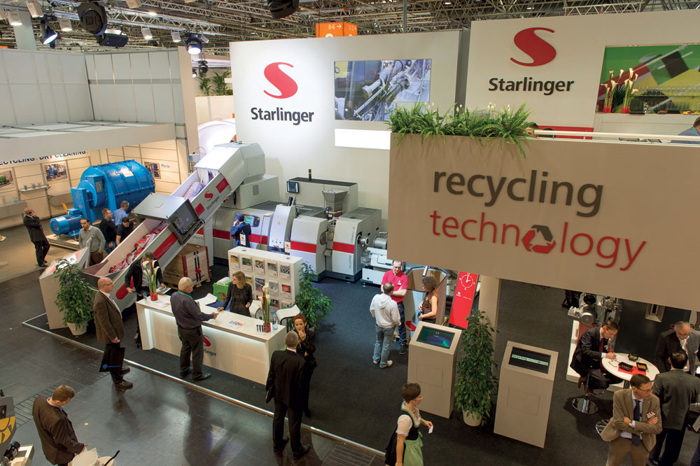 In Hall 9 Starlinger recycling technology had a recoSTAR universal C-VAC recycling line in operation. The newly developed C-VAC degassing module with improved capabilities for heavily printed or contaminated plastic scrap received great feedback from the industry, and the line was sold on-site to a Portuguese plastics recycling company. Two more lines for post-consumer and production scrap recycling were sold in the course of the exhibition in Düsseldorf.