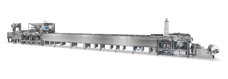 "So that the complete set, which is up to 15 centimetres high and often consists of 2 or 3 layers, can be packed automatically on a high-output thermoforming packaging machine, we have developed a new machine concept, which enables a thermoforming depth of 450 mm to be achieved. The machine frame height is consequently 1300 millim-tres. With the first customer machine it is therefore possible to form and seal large packs in a width range of 200 to 600 millimetres, up to 430 millimetres in length and up to 450 millimetres in depth", says Natalie Schmid, Product Manager at MULTIVAC.