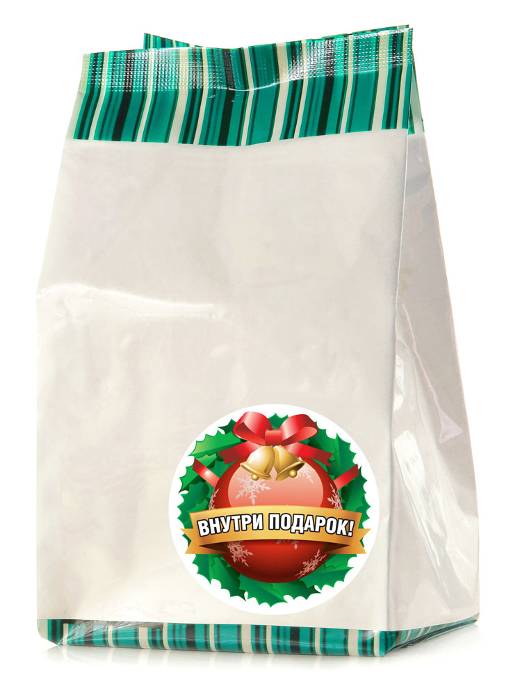 Самый простой и экономичный вариант – акционная самоклеящаяся этикетка. Небольшая, с новогодним дизайном и лаконичной надписью на подобии «Подарок внутри», «Лучшая новогодняя цена» и прочие. Также можно использовать промо-стикеры для новогодней лотерии с призами.