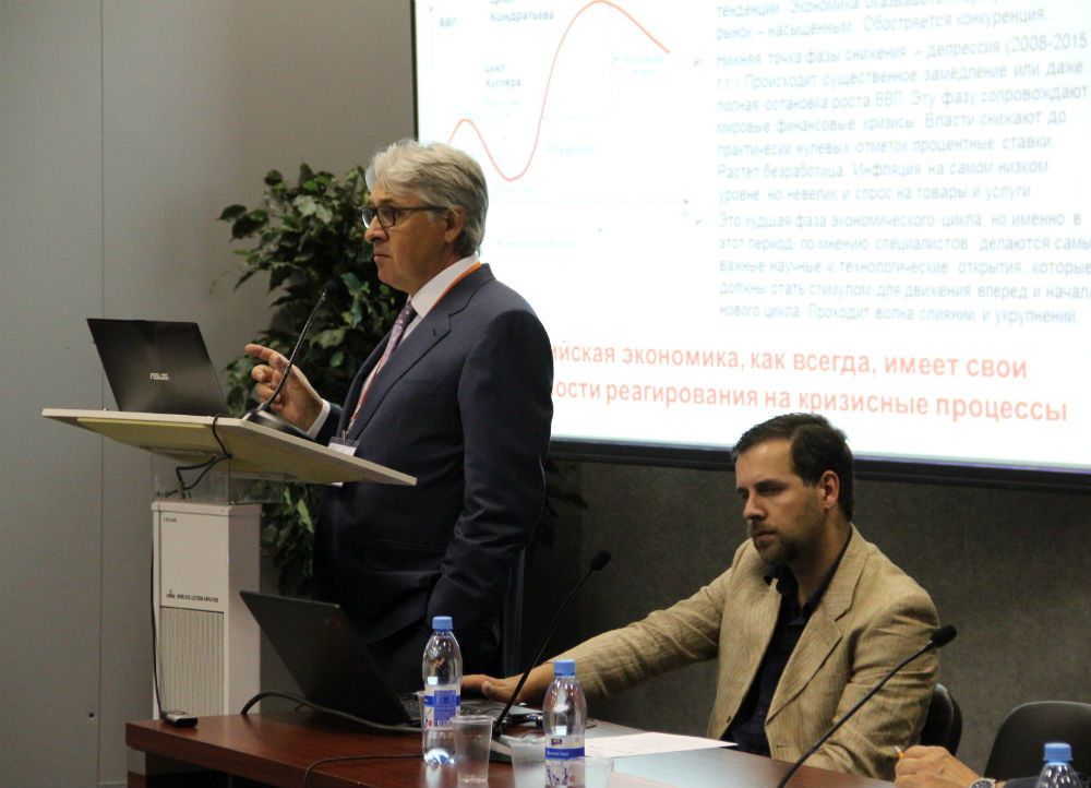 Эти колебания были названы большими циклами конъюнктуры, которые некоторые ученые называют кондратьевскими волнами. Теория Кондратьева не потеряла своего значения и в настоящее время. Более того, поразительные предвидения русского экономиста позволяют ориентироваться в сегодняшней макроэкономической ситуации. Так считает Владимир Чуйков, президент НКПак, председатель Совета директоров ГП «Готэк», являющийся сторонником этой теории. Выступая на Международной научно-практической конференции «Упаковочный рынок России. Вызовы и возможности. Экологическая ответственность», проходившей 19 июня в рамках деловой программы выставки RosUpack, на тему «Повторяет ли упаковочный рынок тренды макроэкономики? Что нам грядущее готовит?», он отметил, что в настоящее время, согласно теории Кондратьева, экономика проходит самую неблагоприятную фазу очередного цикла. Но именно в этот период, по мнению специалистов, делаются самые важные научные и технологические открытия, которые должны стать стимулом для движения вперед и начала нового цикла. Пик развития сменяется спадом, рецессия сменяется депрессией, после которой вновь наступает фаза оживления. Положительный факт, по словам Владимира Чуйкова, состоит в том, что ничто не бесконечно, в том числе неблагоприятная ситуация.