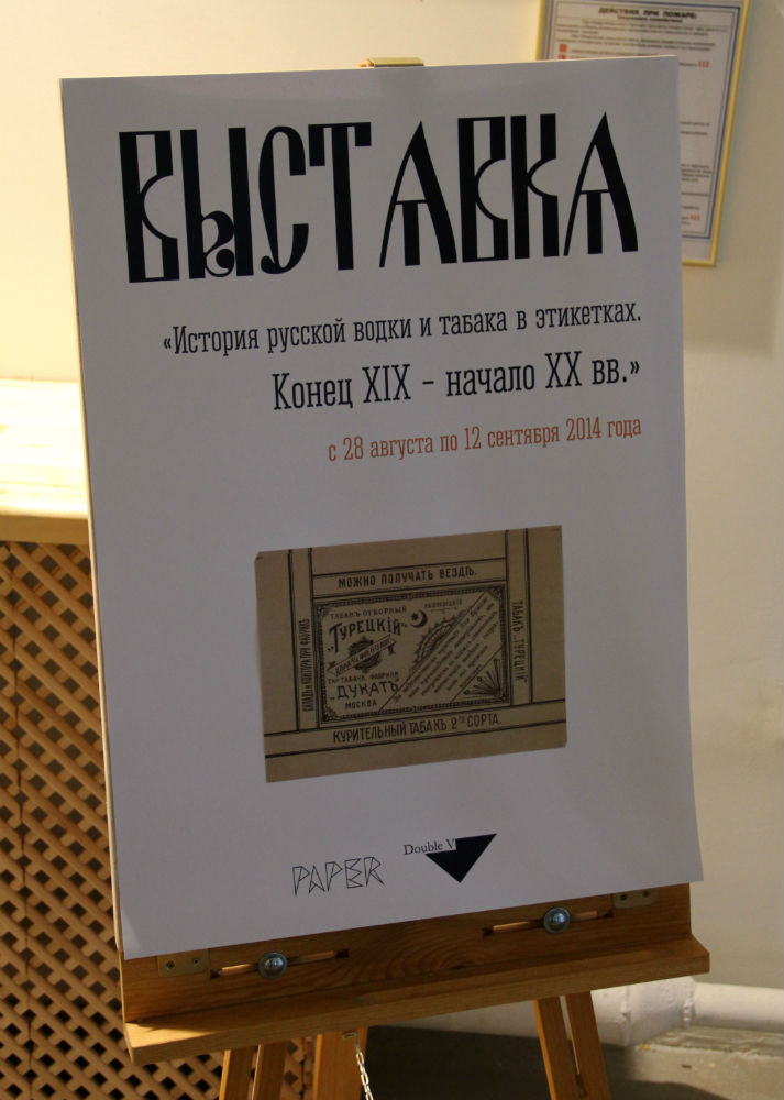 Впервые ГК «Дубль В» и редакция журнала «Тара и упаковка» с 28 августа по 12 сентября 2014 года на арт-площадке PAPER, в историческом центре Москвы, представят уникальную коллекцию антикварных этикеток российских водочных и табачных брендов конца XIX – начала ХХ вв. (до 1913 г.), выполненных в стиле «Русский модерн» из архива Музея упаковки.