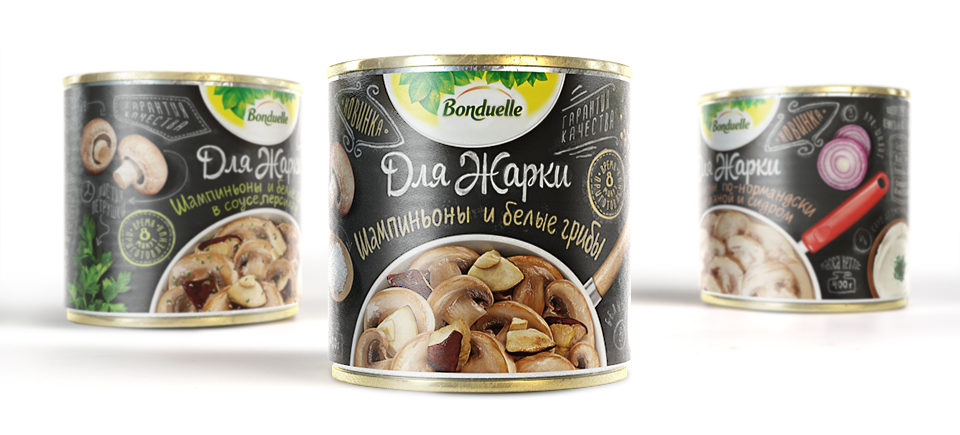 Компания Bonduelle и брендинговое агентство Depot WPF выводят на российский рынок новую линейку консервированных грибов «Для жарки».