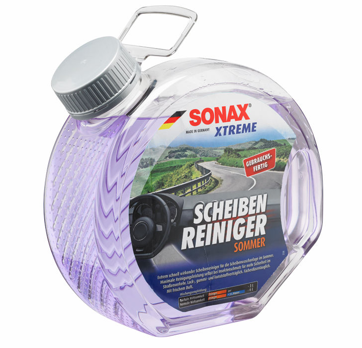 SONAX Extreme: инновационный структурный дизайн упаковки стеклоомывающей жидкости — привлекающей внимание к продукту на полке магазина и удобной в использовании.