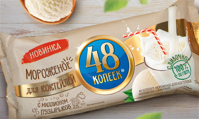 «Нестле Россия» представила новый продукт под брендом 48 КОПЕЕК — мороженое для коктейлей. Дизайн упаковки разработало брендинговое агентство Depot WPF.