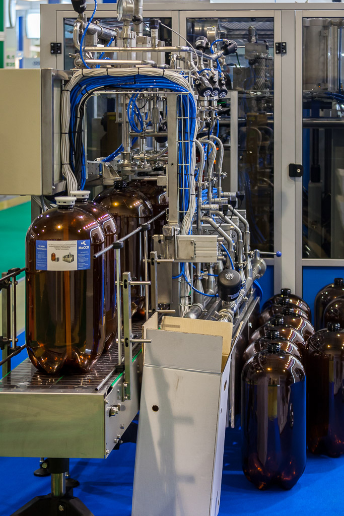 Несомненно являются конкурентами и два предприятия, выпускающих аналогичную технику: компания «Даки» и «Кропоткинский завод МиССП». Оба частые гости на упаковочных выставках и выставках технологического оборудования в Москве. В этот раз эффектнее смотрелся стенд второго. Там был показан комплект техники: автомат для выдува кегов из ПЭТ АВ-150 и машина для их наполнения ДПК-150. Автомат позволяет получать кеги вместимостью 19-30 литров. Производительность до 150 емкостей в минуту.