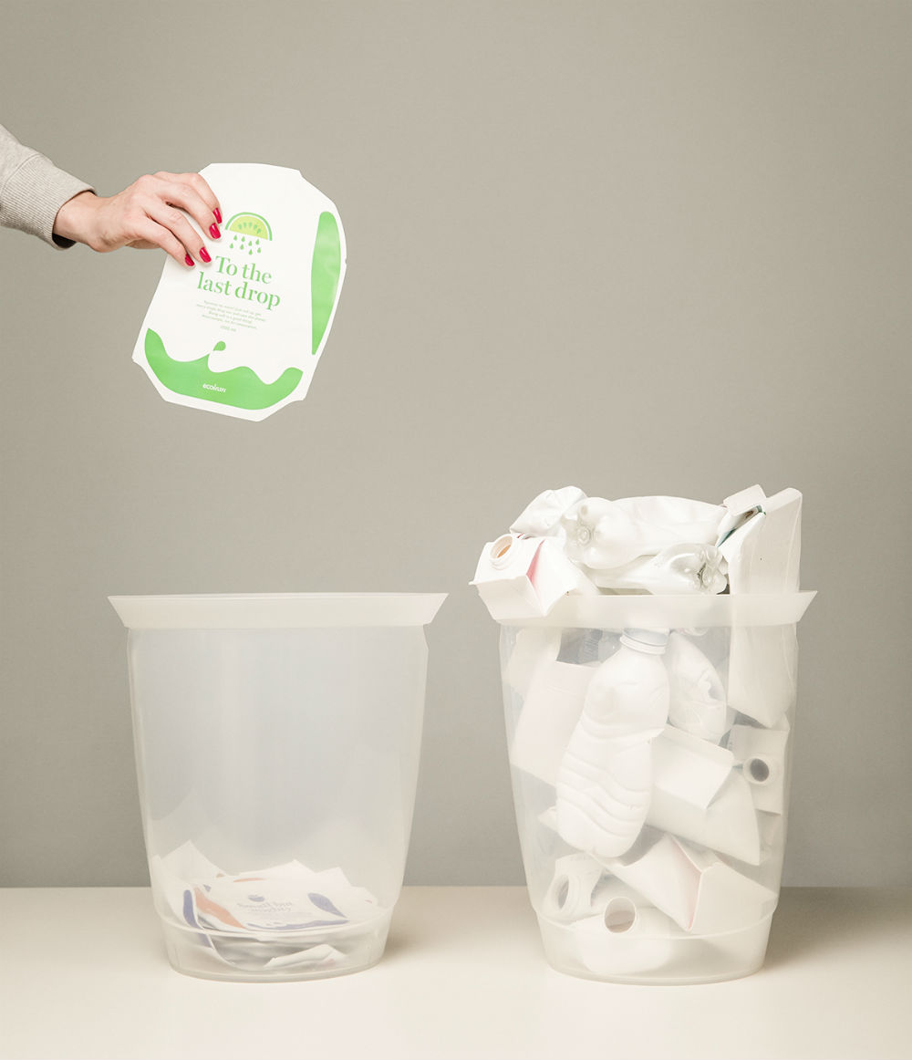 В-третьих, благодаря мягкому материалу содержимое упаковки Ecolean расходуется практически на 100%, тогда как при употреблении вязких продуктов в картонной упаковке остается и выбрасывается вместе с ней приблизительно 100 мл продукта. При полном опустошении упаковка Ecolean становится плоской, как конверт, и занимает мало места в мусорном ведре.