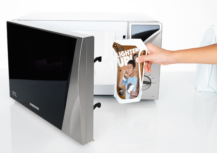 В-четвертых, упаковка Ecolean очень удобна для потребителя. Она мягкая и гибкая, но одновременно прочная. Вскрыть упаковку, оторвав уголок, – простая задача даже для ребенка; ее удобно держать благодаря ручке, наполненной воздухом. Продуманная геометрическая форма обеспечивает устойчивость упаковки, даже если она заполнена наполовину. Упаковка Ecolean отвечает всем современным требованиям, ее вместе с содержимым продуктом можно разогревать в микроволновой печи.