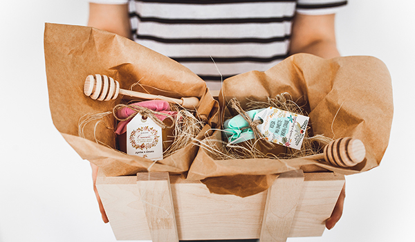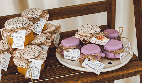Все настройки задаются на странице товара: цвет драпировки, стиль бирочек, количество баночек и их наполнение — нужный сорт мёда или варенья. Остаётся оформить заказ и дождаться звонка нашего менеджера. Это нужно, чтобы уточнить срок и способ доставки.