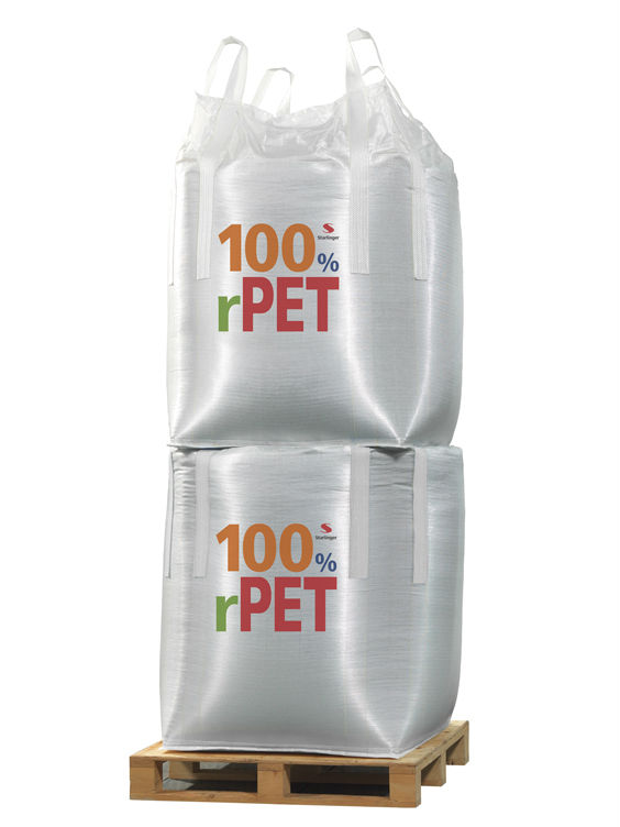 Since the presentation at K 2013 of the first FIBC made of 100 % woven PET, and based on many years of company experience in PET recycling, Starlinger textile packaging has developed proprietary technology for the production of woven tape fabric from up to 100 % rPET flakes. Since the properties of rPET match those of virgin material, fabric woven from rPET has exceptionally high tensile strength coupled with a high creep modulus. It is extremely resistant and retains shape stability over a long period of time even under the effects of load and temperature exposure – advantages which make PET fabric the material of choice for a wide range of new applications.
