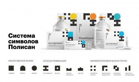 Агентство :OTVETDESIGN провело ребрендинг серии медицинских препаратов «Полисан». Сложная кодировка из трёх элементов, дающая представление о лекарственной форме, способе применения, фармакотерапевтической группе, хороша для выстраивания внутренних бизнесс-процессов компании, для подчеркивания корпоративной идентичности. Вполне подойдет как элемент оформления сайта. Но потребитель либо будет считать ее просто элементом дизайна упаковки, либо логотипом компании. Выгодно ли так нагромождать символы?