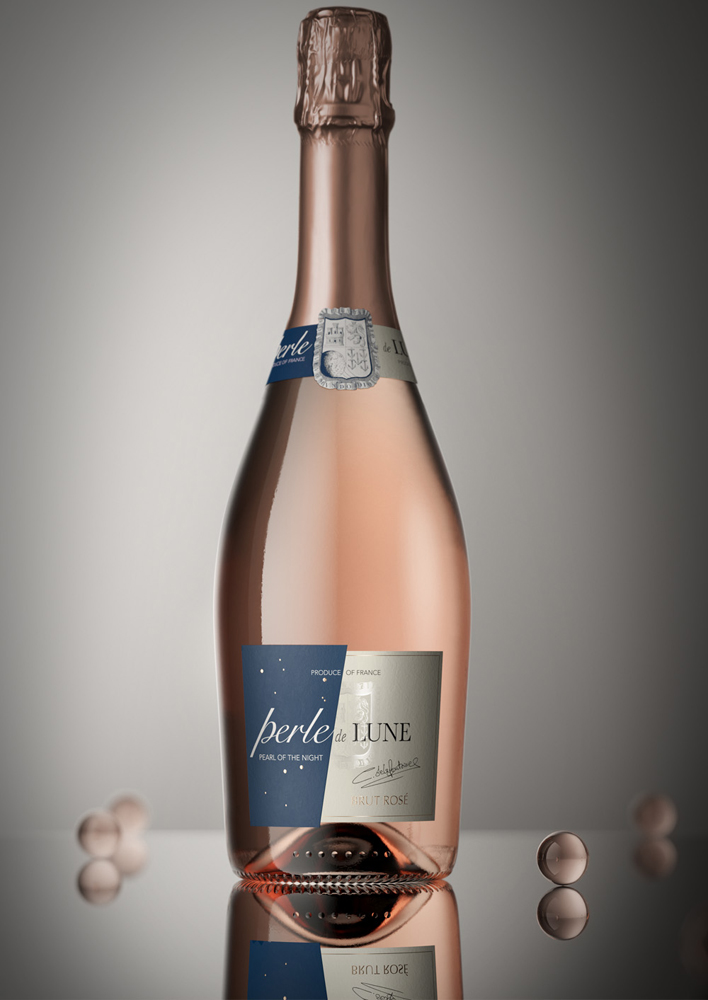 Вот еще одна винная концепция, тоже с блеском. Только уже более сдержанным и благородным. Французским креативным агентством lasuiteatelier разработан дизайн этикетки для игристого вина Perle de Lune.