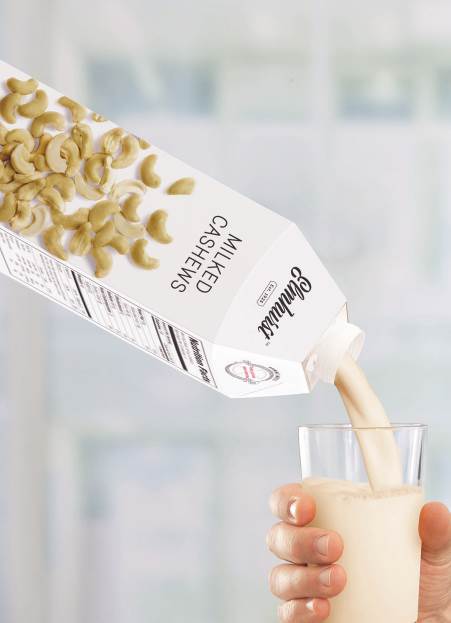 Американская компания Steuben Foods в настоящее время предлагает напитки премиум-класса на основе орехов с миндалем, кешью, фундуком и грецким орехом в картонной упаковке Combidome.