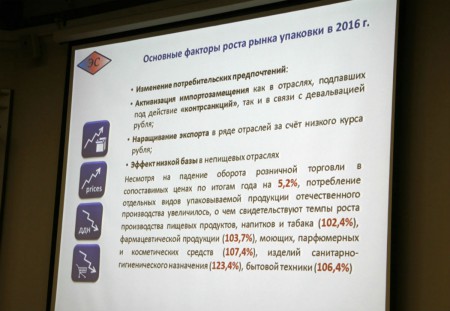Среди основных факторов, способствовавших росту производства, Юрий Алпеев назвал изменения потребительских предпочтений; активизацию импортозамещения в отраслях, подпавших под действие «контрсанкций», а также связанную с девальвацией рубля; наращивание экспорта в ряде отраслей; эффект низкой базы в непищевых отраслях. В Центральном федеральном округе на первые места по росту производства вышли Липецкая, Белгородская и Московская области. В Приволжском федеральном округе лидерами стали Татарстан, Нижегородская область и Башкортостан. На северо-западе страны лидеры роста – Ленинградская и Вологодская области, в Южном федеральном округе рост отмечен в Краснодарском крае.