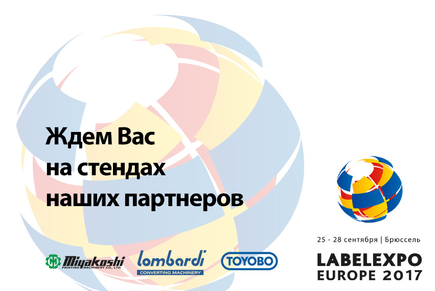 Мы будем рады видеть вас на площадках наших партнеров: японской компании Miyakoshi, поставляющей полуротационные офсетные машины для печати этикетки; итальянской семейной компании Lombardi, производящей флексографские печатные машины, а также секции отделки для этикетки; корпорации Toyobo - наиболее известного русскоговорящим специалистам производителя водовымывных фотополимерных пластин.