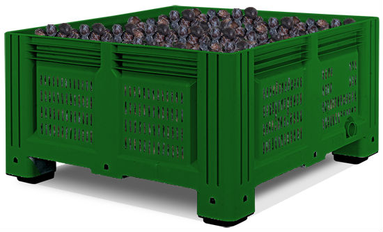 iBox 1130х1130х580 мм с перфорированными стенками и дном предназначен для мягких фруктов и овощей: персиков, абрикосов, слив, томатов. Уменьшенная высота контейнера при этом предотвращает сминание загруженных в контейнер плодов.