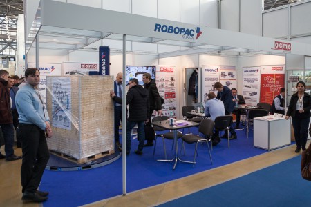 У нас на стенде машина Robopac-708 – это наша самая проверенная машина для упаковки палет в стретч-пленку. Все самые лучшие технологии, наработанные компанией за 40 лет, мы включили в нее. Она хороша тем, что умеет экономить деньги, то есть себестоимость обмотки палеты за счет предварительного растяжения пленки выходит очень дешевой. При этом не меняется статичность груза и другие параметры. Еще мы предлагаем клиентам большой ряд термоусадочных машин, а также разливные и упаковочные линии полного технологического цикла, которые мы делаем совместно с компанией OCME.