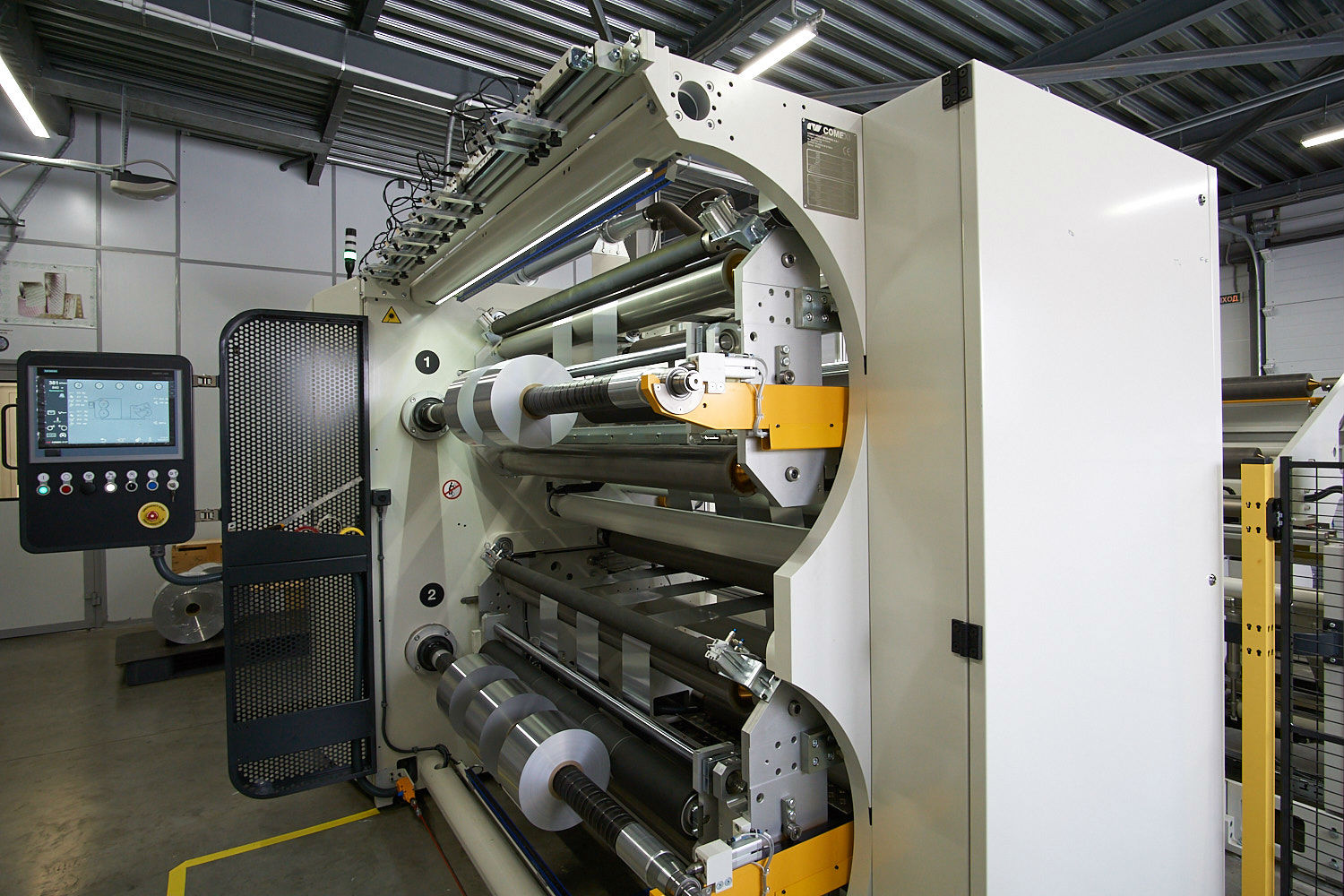 Handling this most modern slitter machine is very easy thanks to its sophisticated tools. It is fully automated. Touch panels with several control units display all the information one may need. The security system does not allow anyone to cross the safety area during operation. In case of emergency, the machine will stop immediately safeguarding the life and health of the personnel.