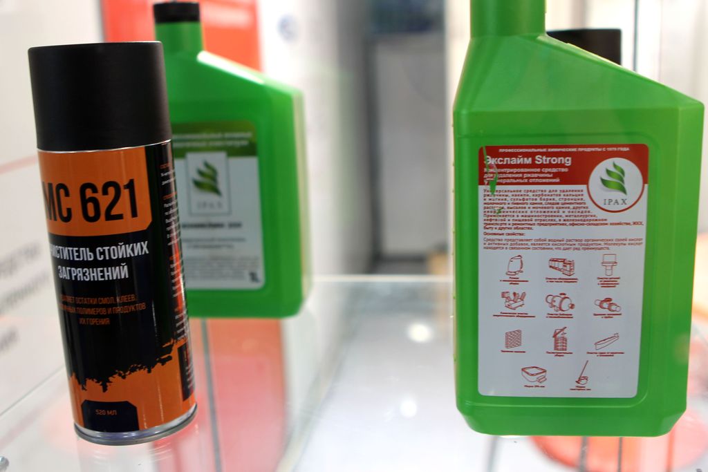 Традиционно на нашем стенде мы показали всю линейку чистящих средств для промышленного оборудования. Посетители смогли увидеть обновленный дизайн очистителя MC 621, который предназначен для удаления остатков смол, клеев, различных полимеров и продуктов их горения. Средство активно используется нашими заказчиками для очистки литьевых форм, фильер, форсунок.
